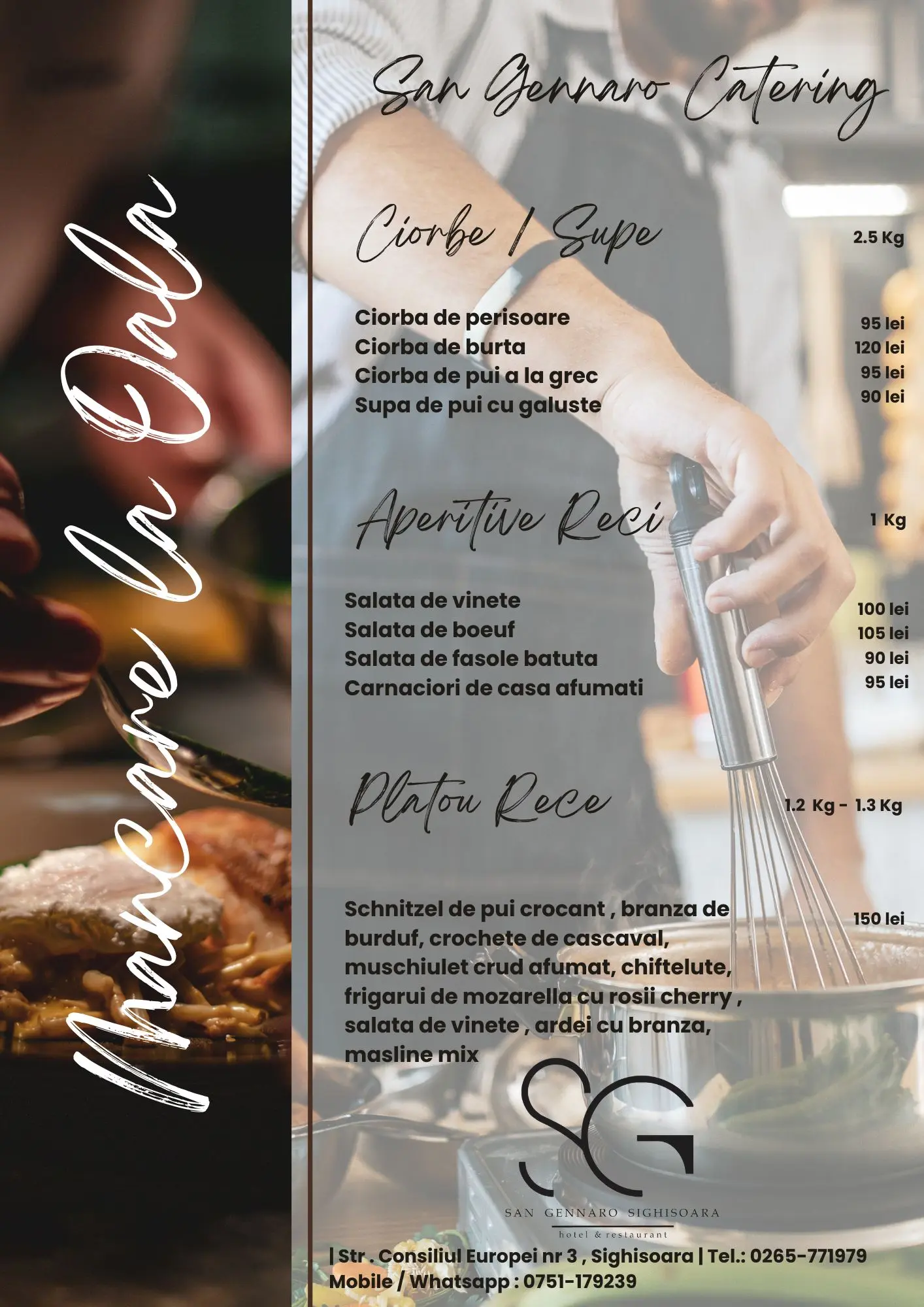 Acum poți COMANDA mâncarea, simplu și eficient, cu livrare la domiciliu în SIGHIȘOARA.Pe lângă ofertele de tip MENIUL ZILEI, puteți alege și dintr-o gamă variată de preparate din meniul nostru!