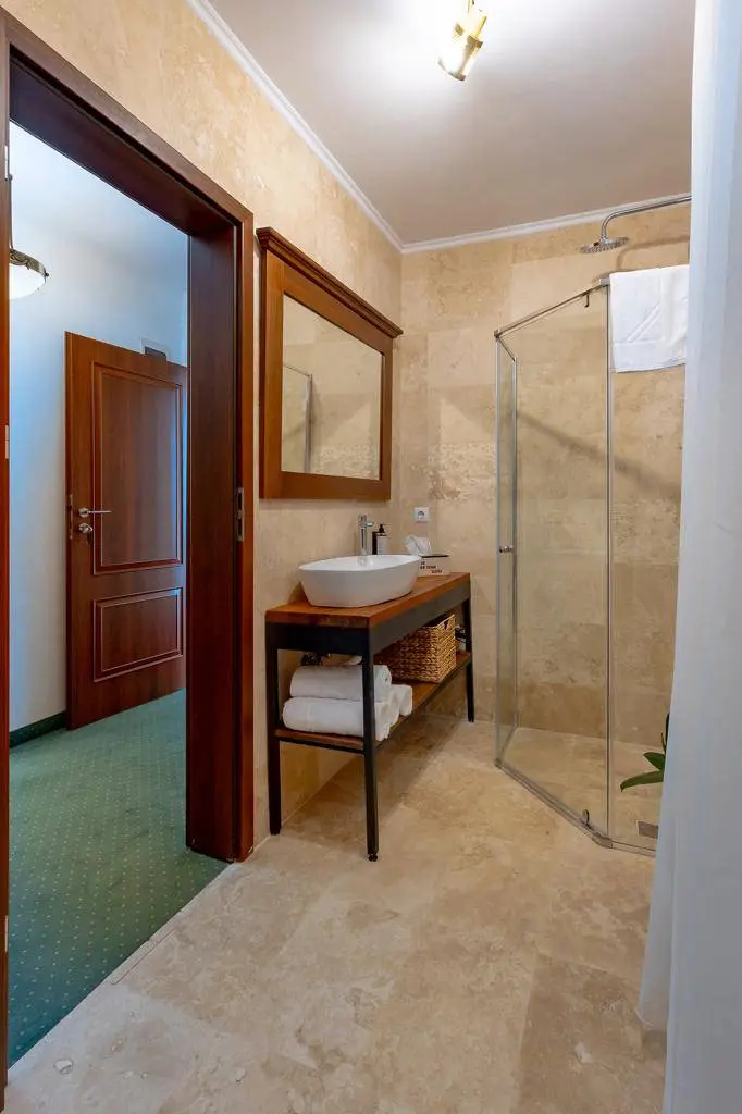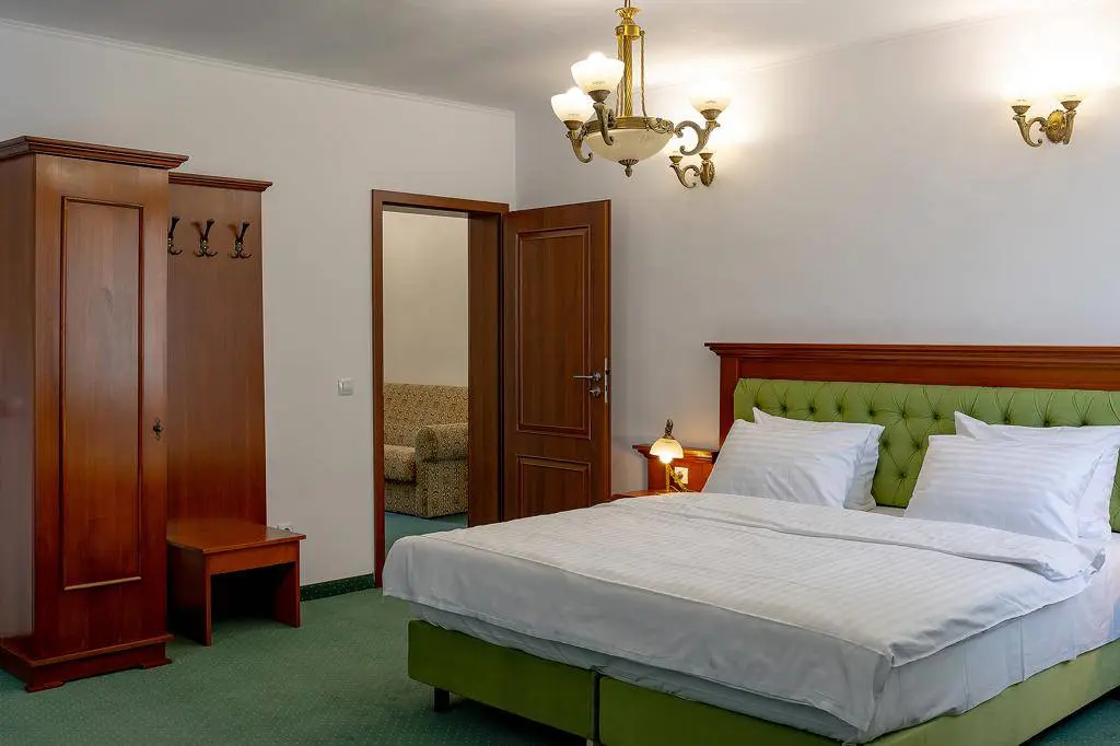 Și de 3 apartamente compuse din dormitor, living, baie proprie, bucătarie utilată și dotată, TV, WiFi .